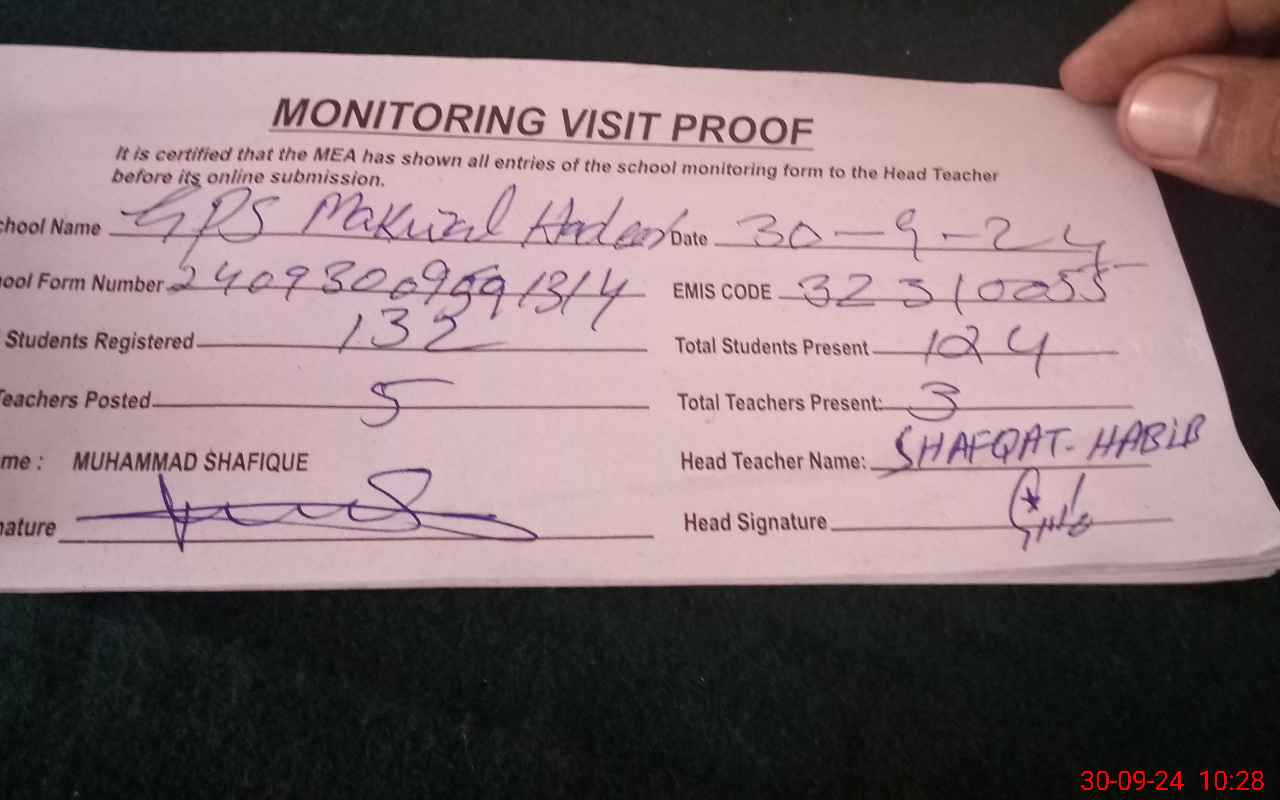 | EMIS Code: 32310055 | Name of School: GPS MAKWAL HADEER | |||