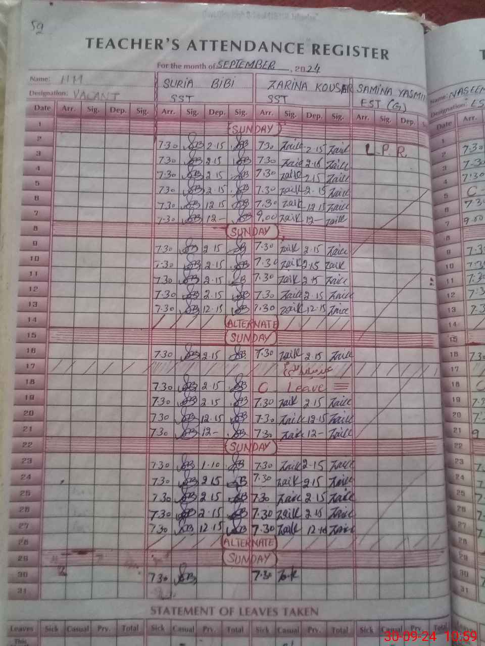 | Leave | Duty | Absent | Maternity | Medical | Ex- Pak |