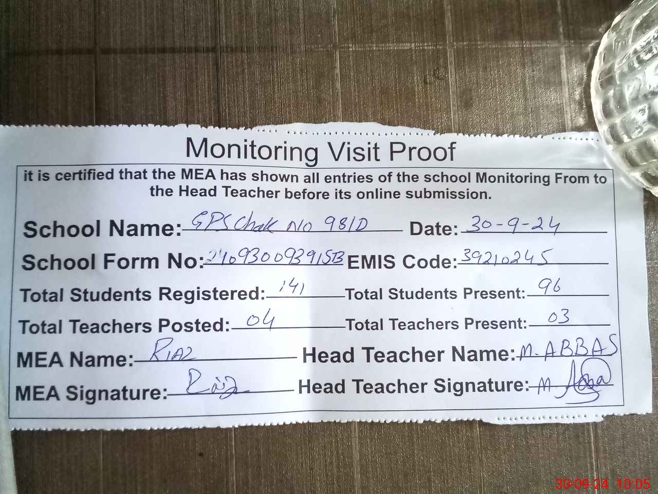 | EMIS Code: 39210245 | Name of School: GPS CHAK NO. 98/D | |||