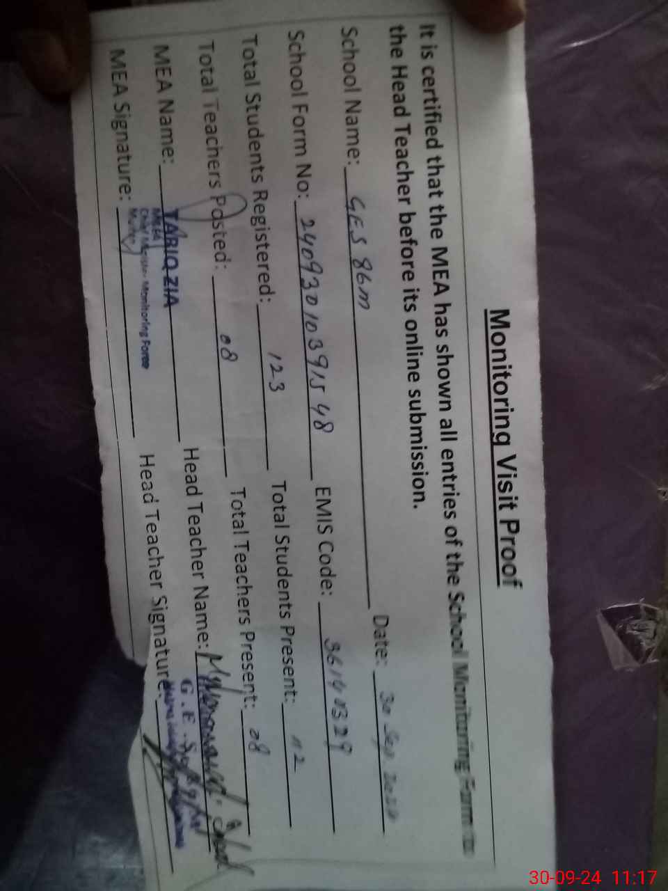 | EMIS Code: 36140329 | Name of School: GES 86/M JALALPUR PIRWALA | |||