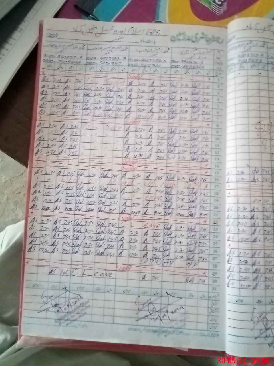 | CNIC | Full Name | Designation | R/C | Absence During Last Calender Month |