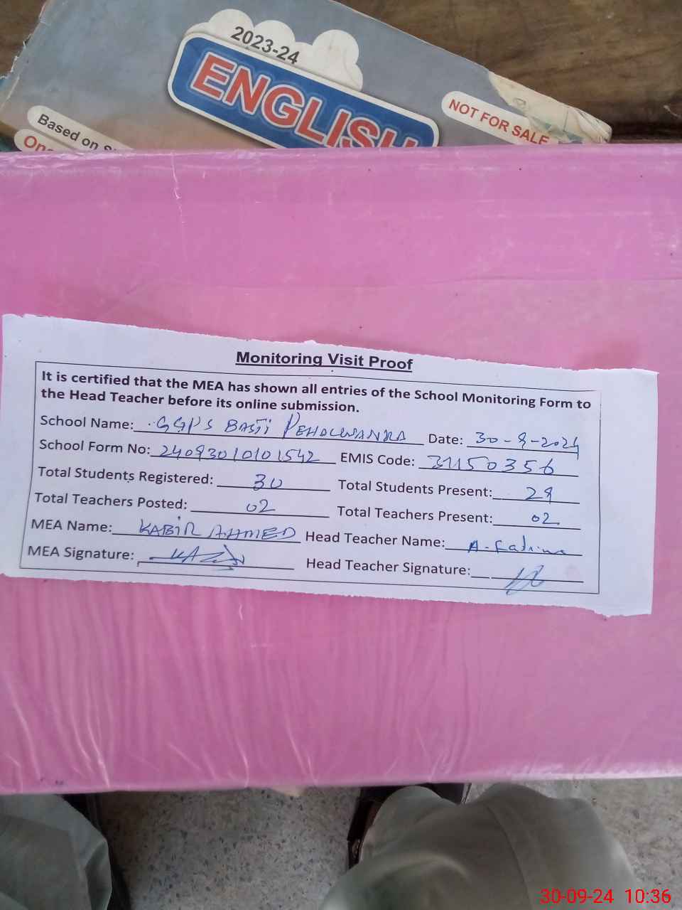 | Attendance Register | Head Teacher | MEA with School | Visit Proof |