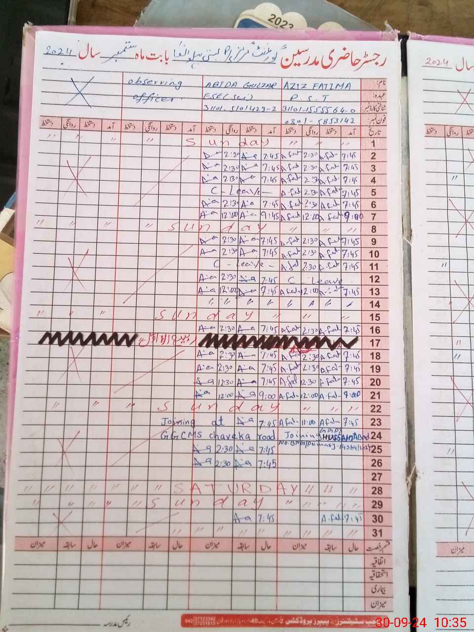 | Name: Su**** Aj**** Designation: (School Headmaster's/Headmistress's) PST Phone/Cell Number: 03**** |
