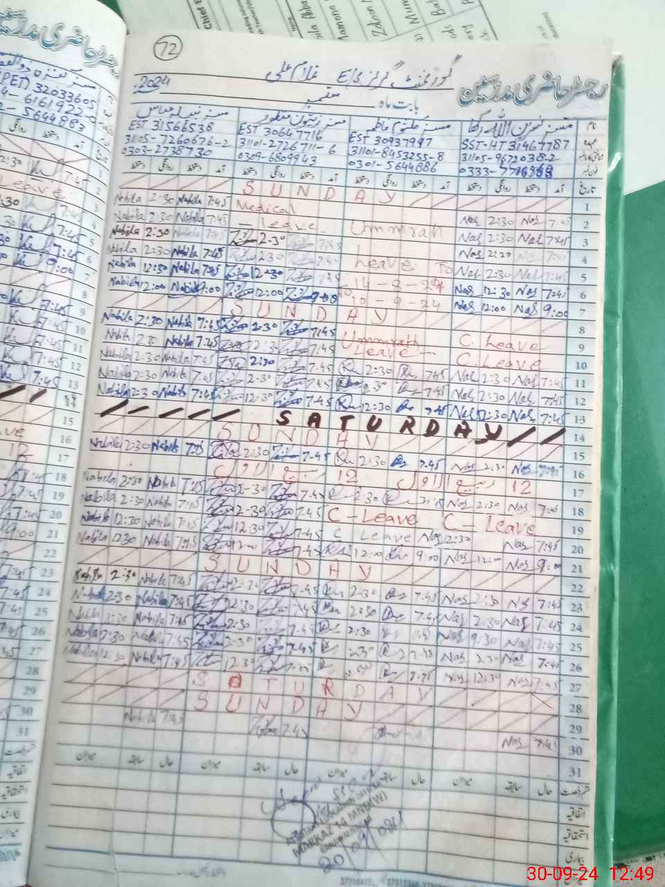 | Leave | Duty | Absent | Maternity | Medical | Ex- Pak |