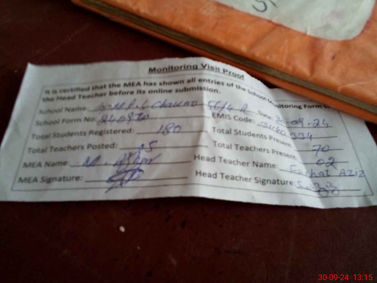 | EMIS Code: 31140334 | Name of School: GMPS CHAK NO. 56/4-R | |||
