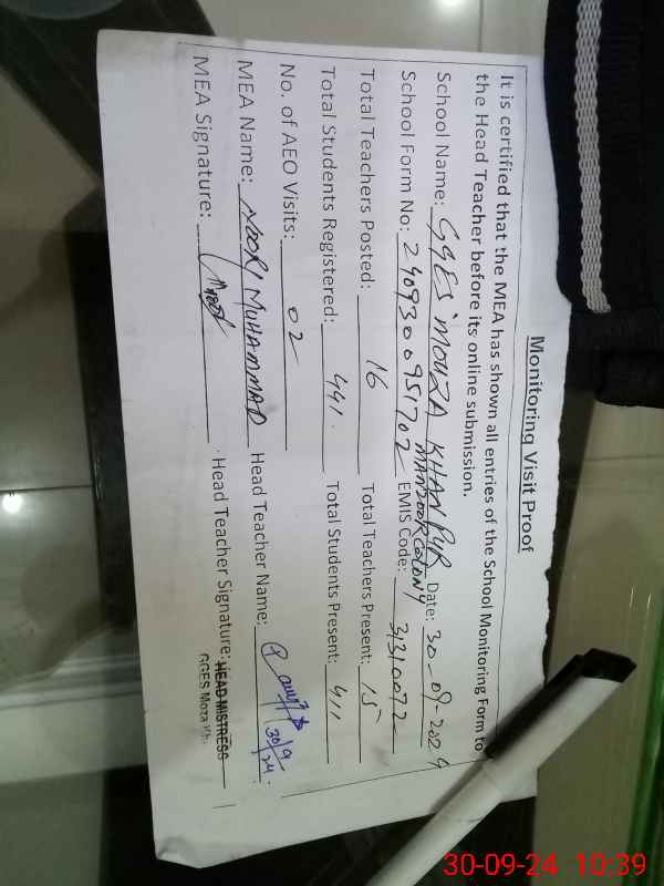 | EMIS Code: 31310072 | Name of School: GGES MOUZA KHAN PUR MANZOOR COLONY | |||