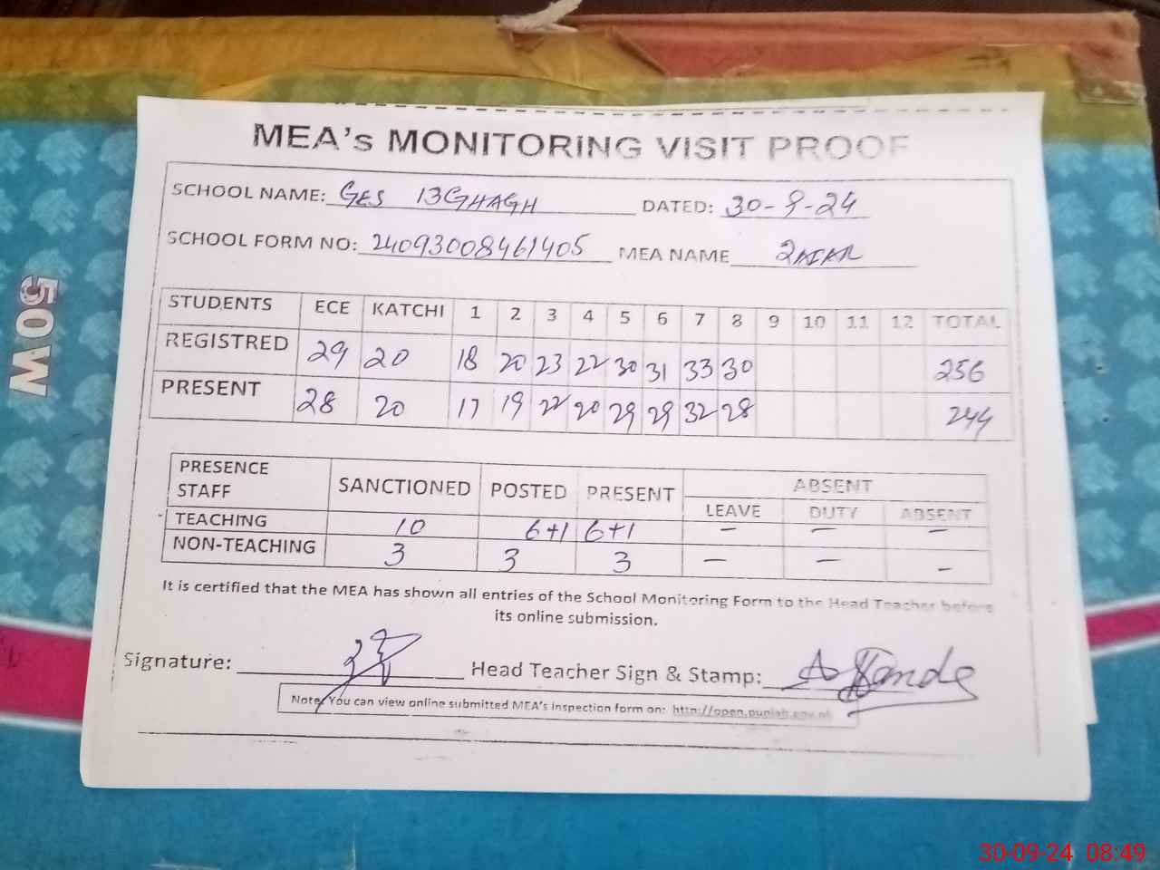 | EMIS Code: 36410076 | Name of School: GES 13 GHAGH, P/O 25 PUL, ABDUL HAKIM | |||