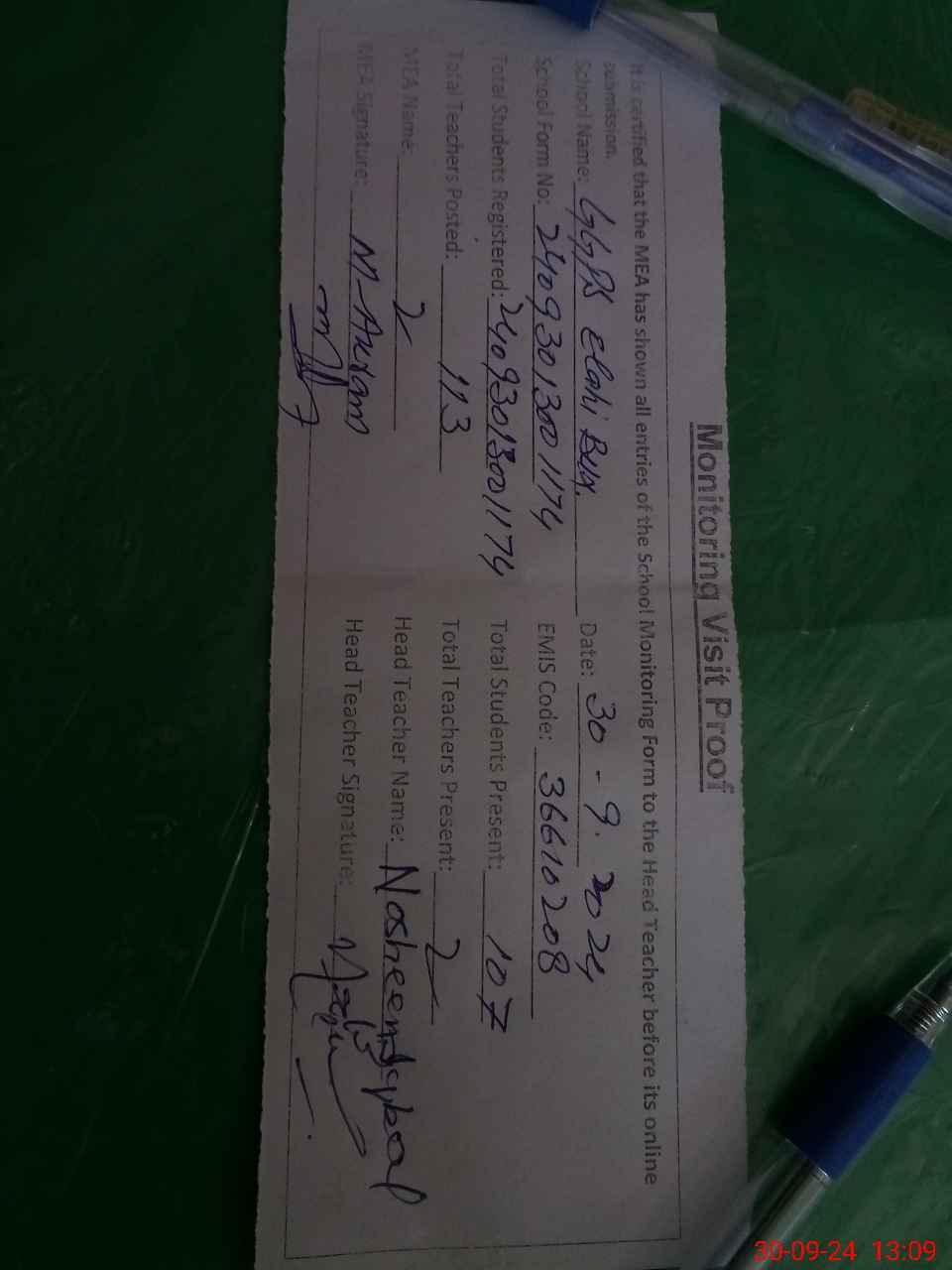 | EMIS Code: 36610288 | Name of School: GGPS ELAHI BUX WALA | |||