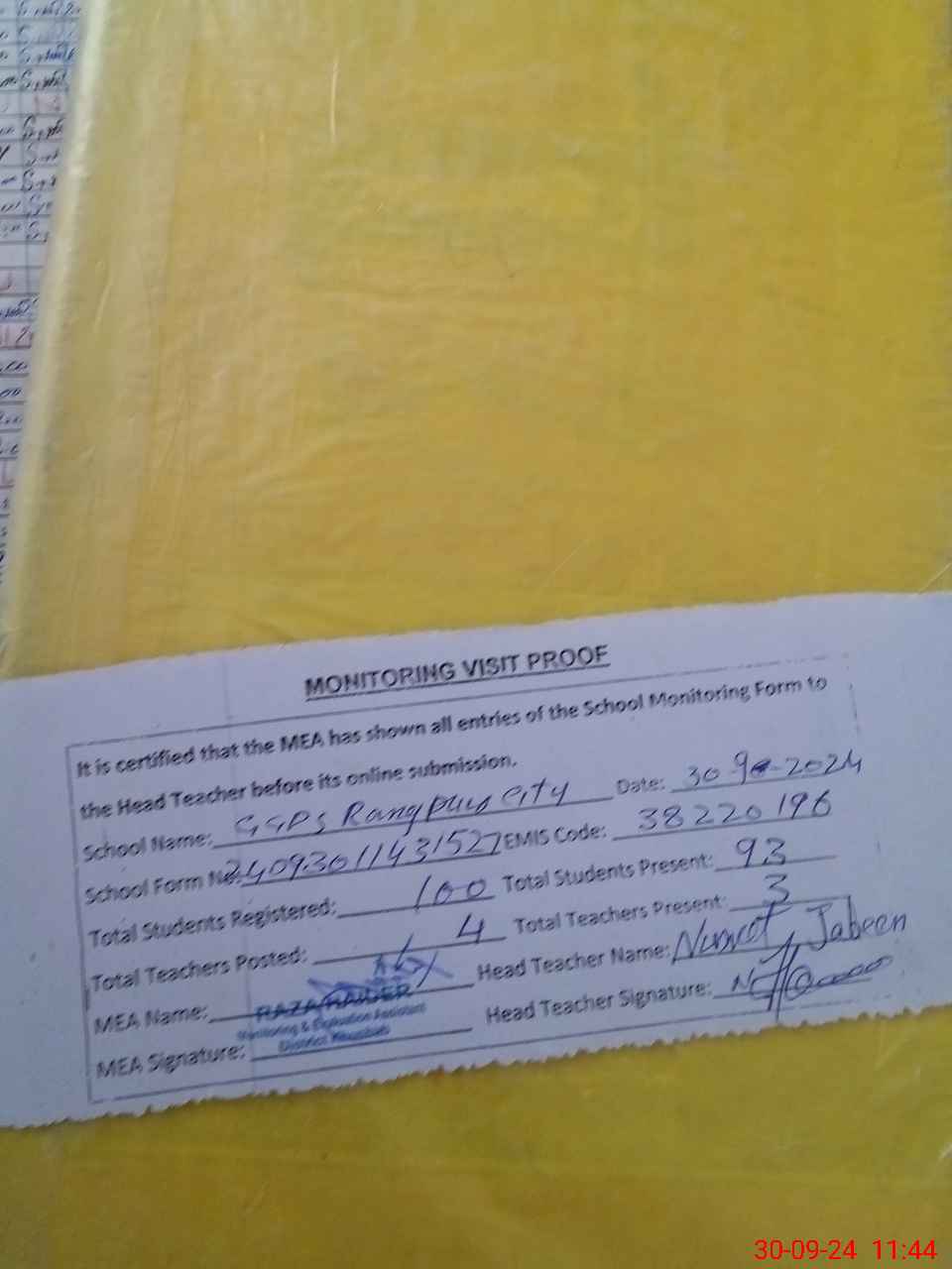 | EMIS Code: 38220196 | Name of School: GGPS RANGPUR CITY | |||