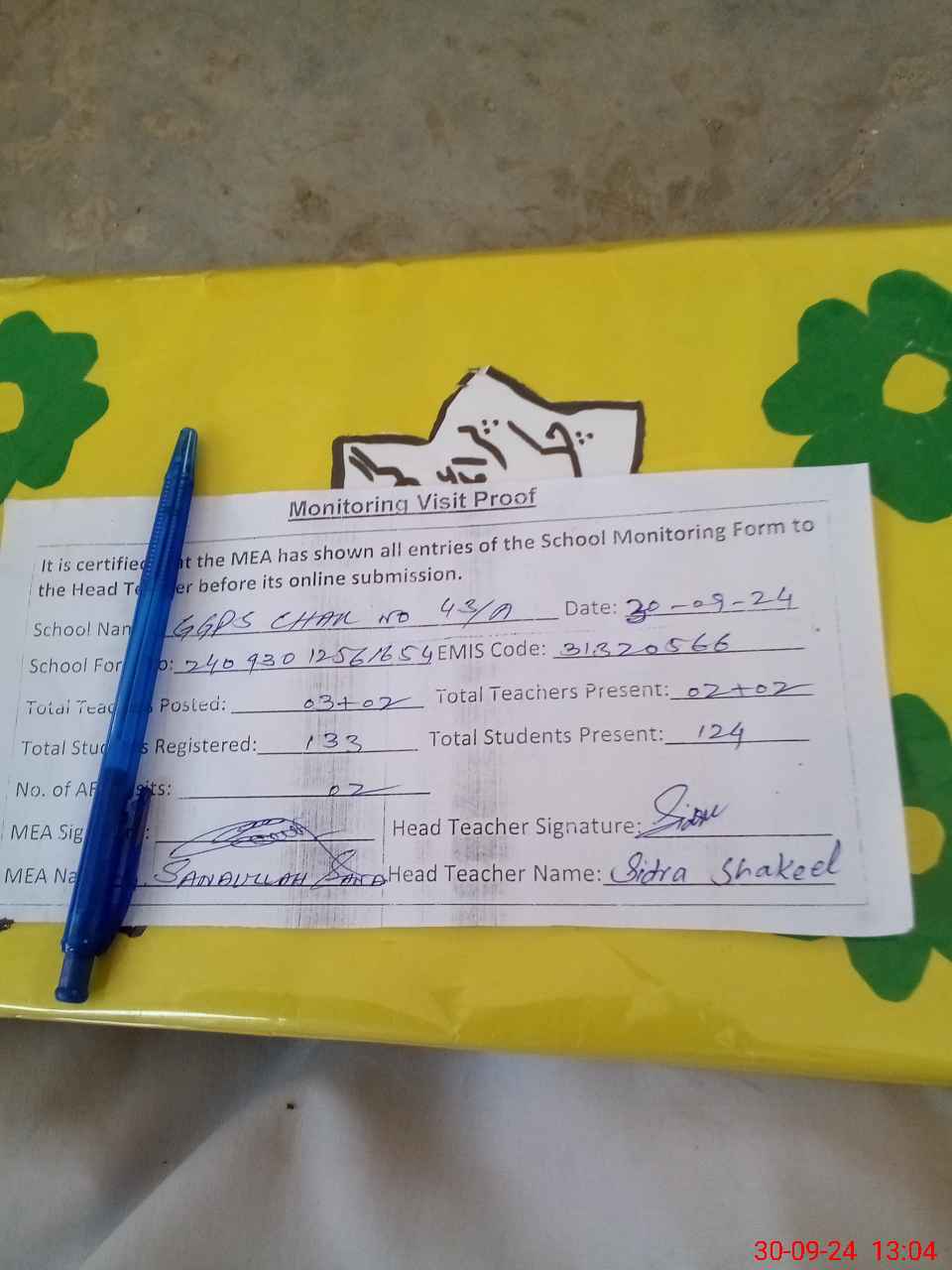 | EMIS Code: 31320566 | Name of School: GGPS CHAK 43/A | |||