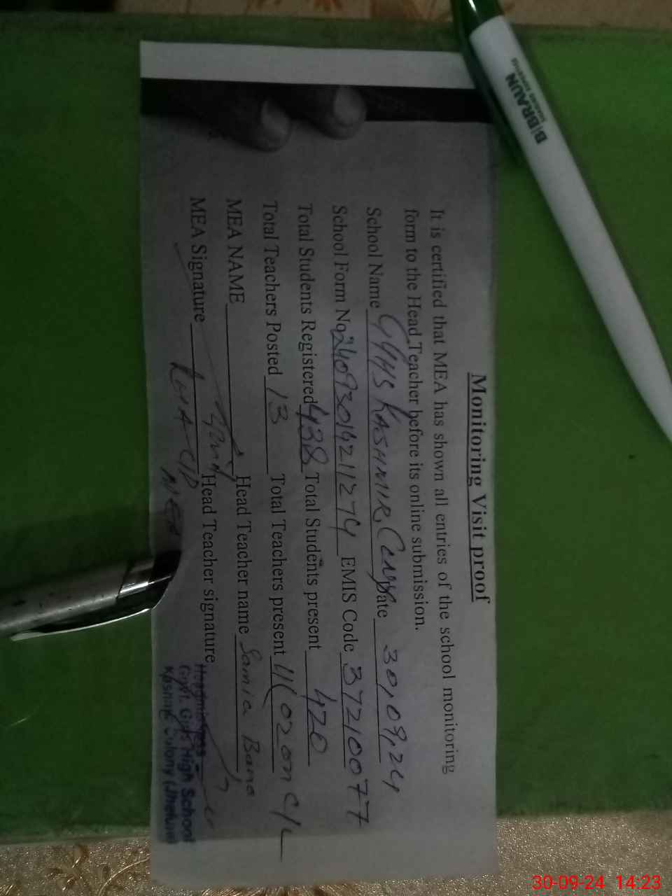 | EMIS Code: 37210077 | Name of School: GGHS KASHMIR COLONY | |||