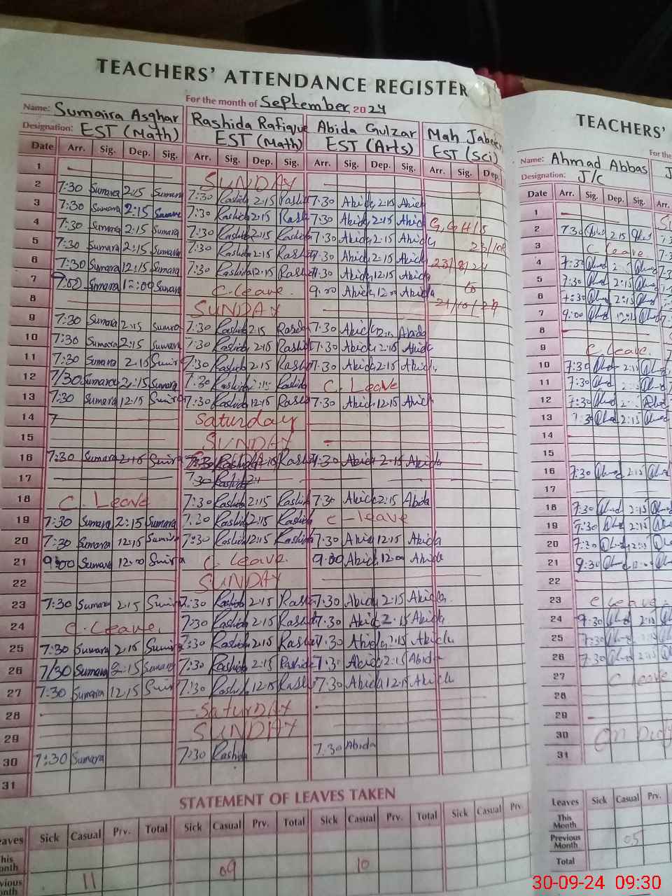 | Leave | Duty | Absent | Maternity | Medical | Ex- Pak |