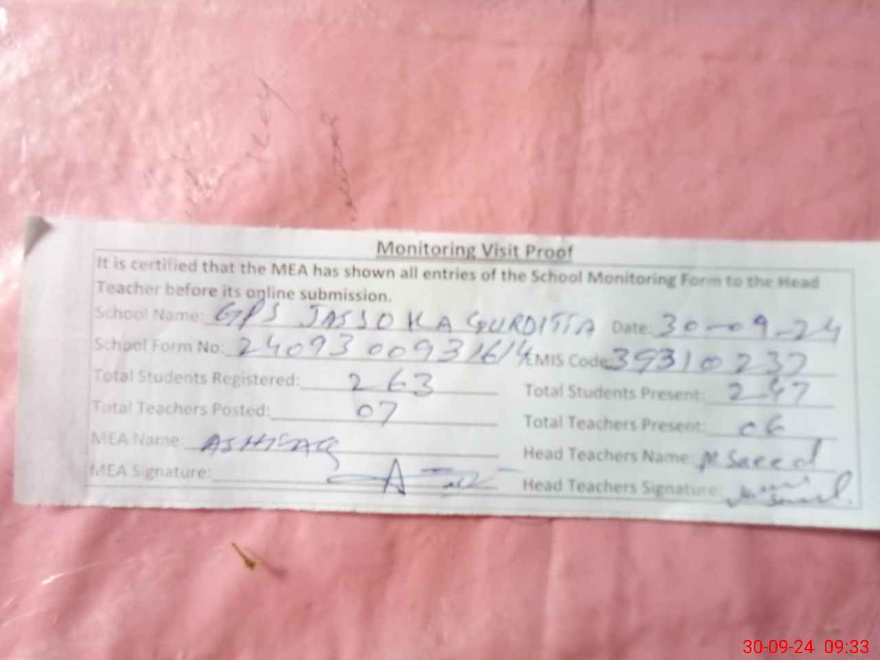| EMIS Code: 39310237 | Name of School: GPS JASSO KAY GURDITTA | |||