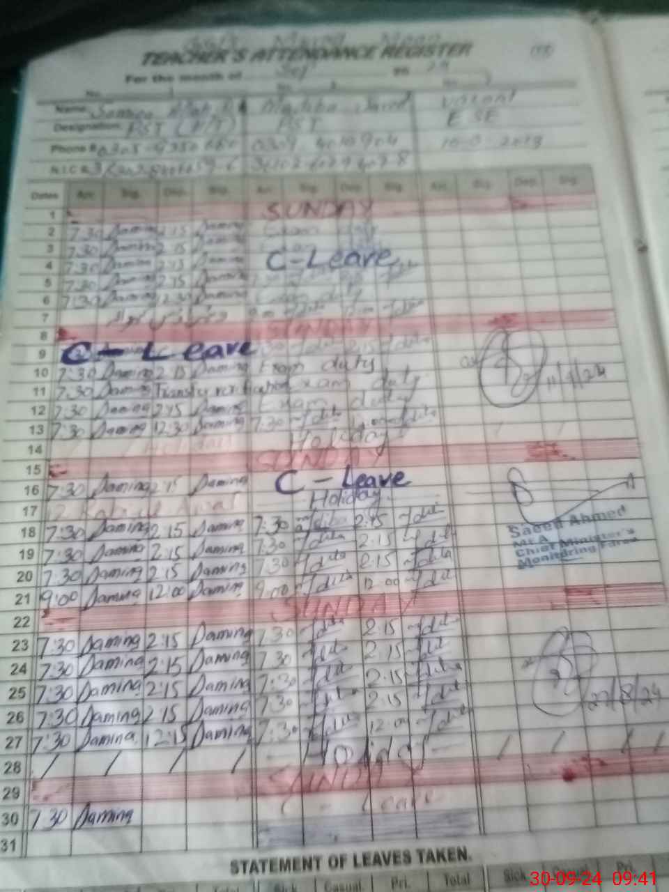 | Name: Sa**** Al**** Di**** Designation: (School Headmaster's/Headmistress's) ESE Phone/Cell Number: 03**** |