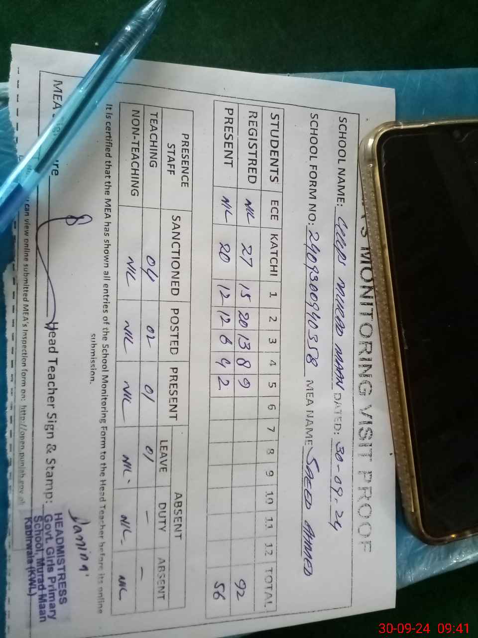 | EMIS Code: 36410405 | Name of School: GGPS MURAD MAAN SARAI SIDHU | |||