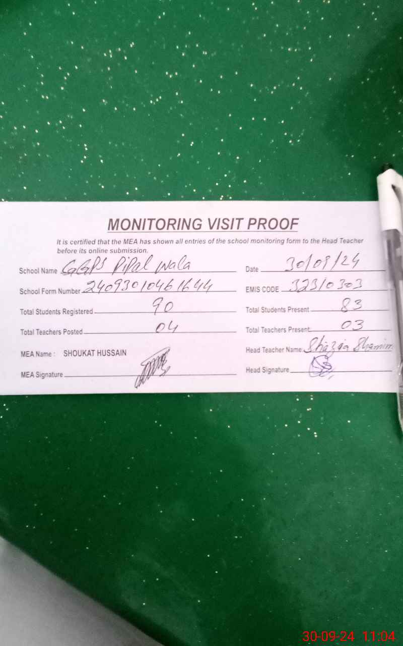 | EMIS Code: 32310303 | Name of School: GGPS PIPAL WALA | |||