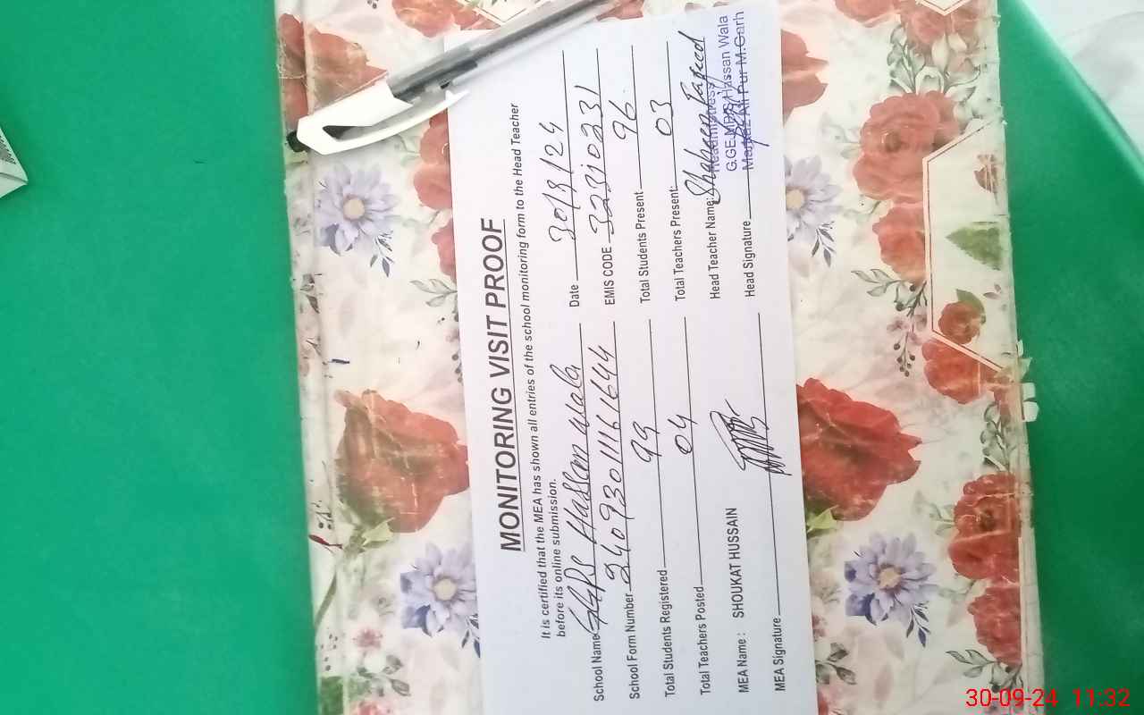 | EMIS Code: 32310231 | Name of School: GGPS HASSAN WALA | |||