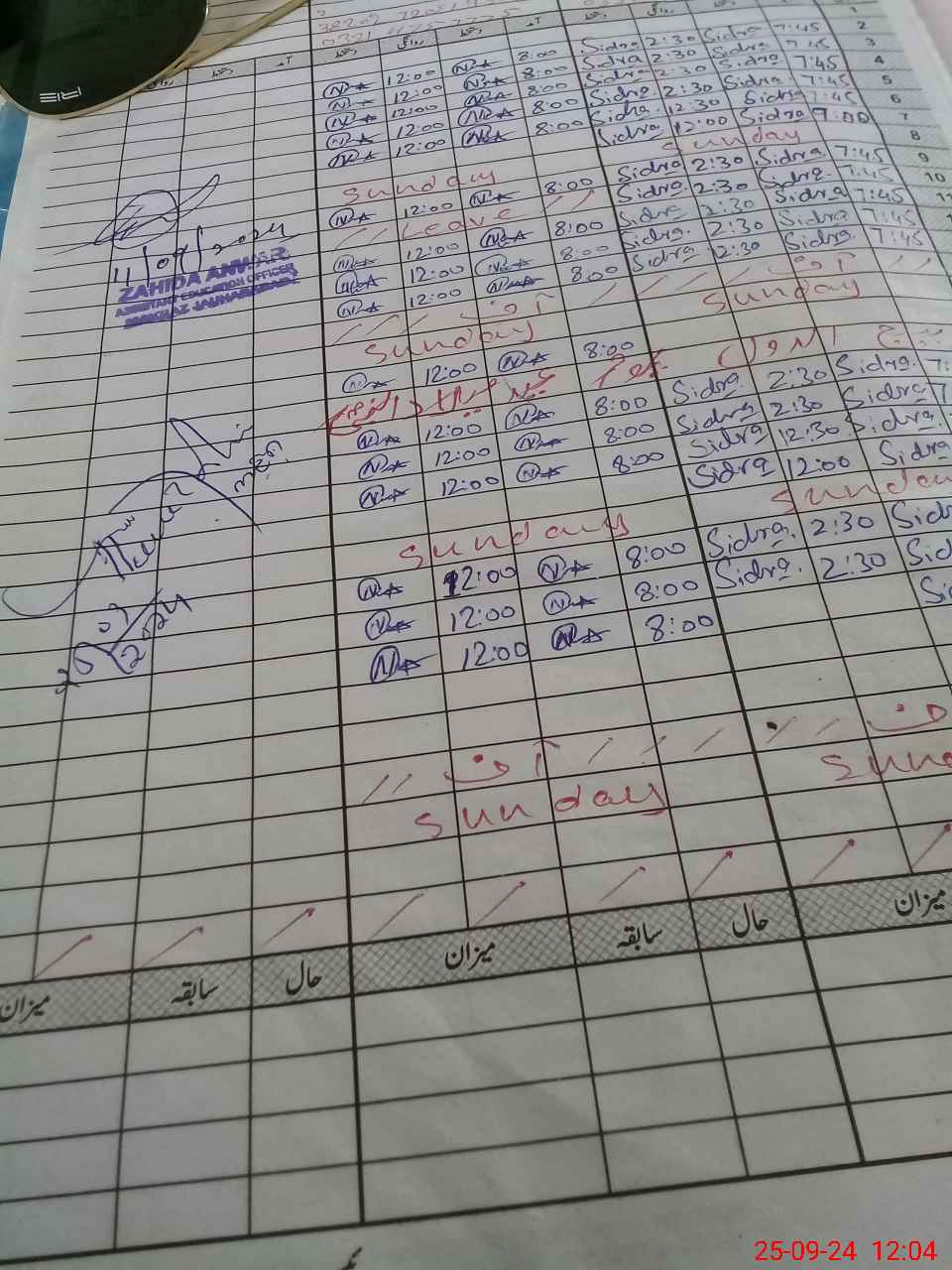 | CNIC | Full Name | Designation | R/C | Absence during last cal. month |