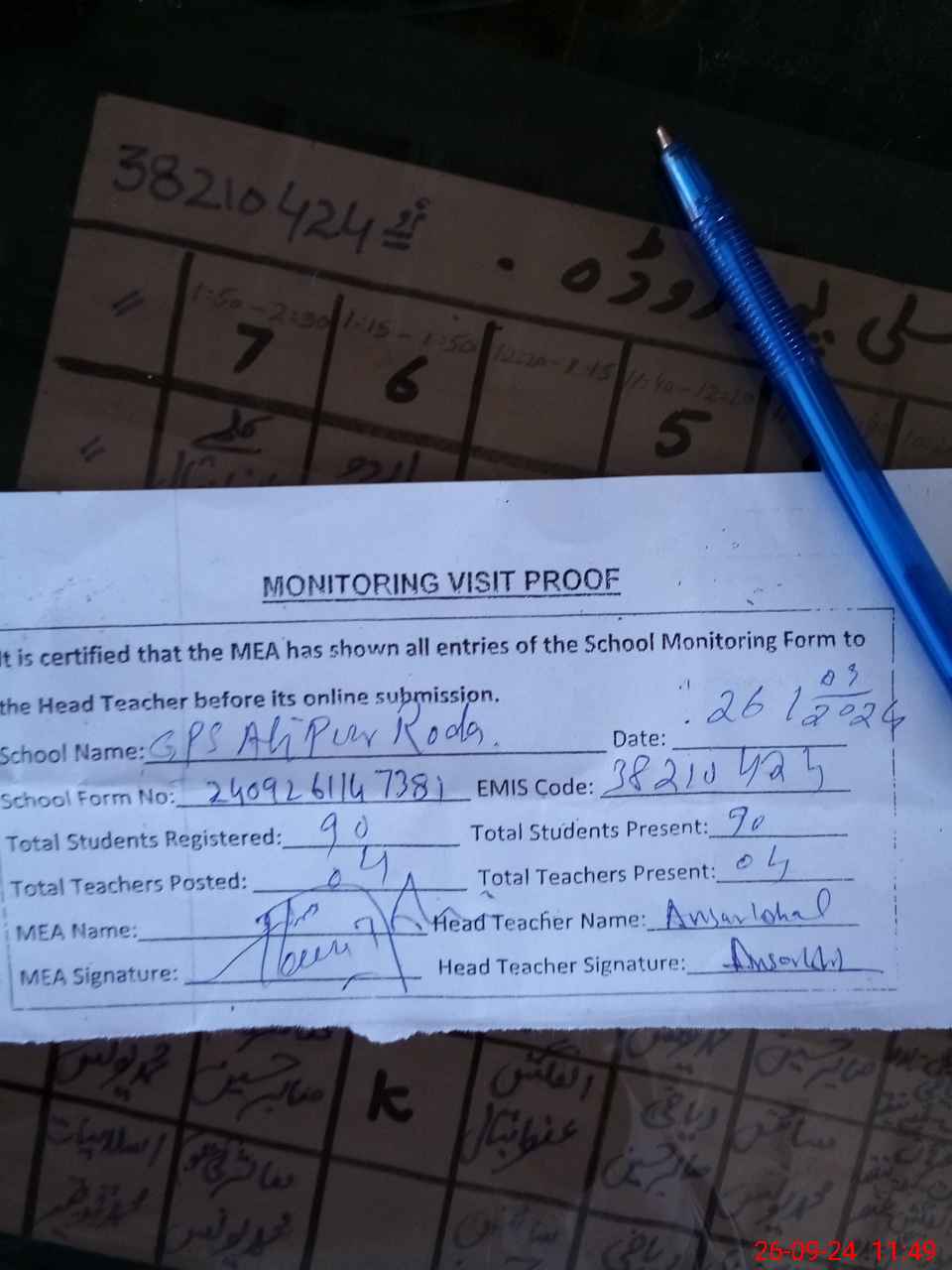 | EMIS Code: 38210424 | Name of School: GPS ALI PUR RODA | |||