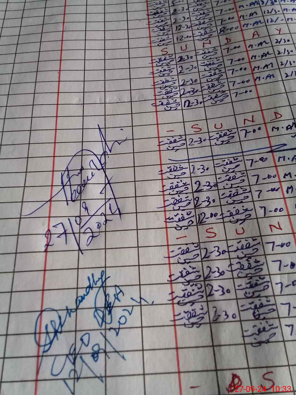 | Monitoring Date: 27-09-2024 | Start Time: 27-09-2024 10:14 AM | End Time: 27-09-2024 10:34 AM | Name of MEA: HA**** GH**** MO**** UDDI**** | |