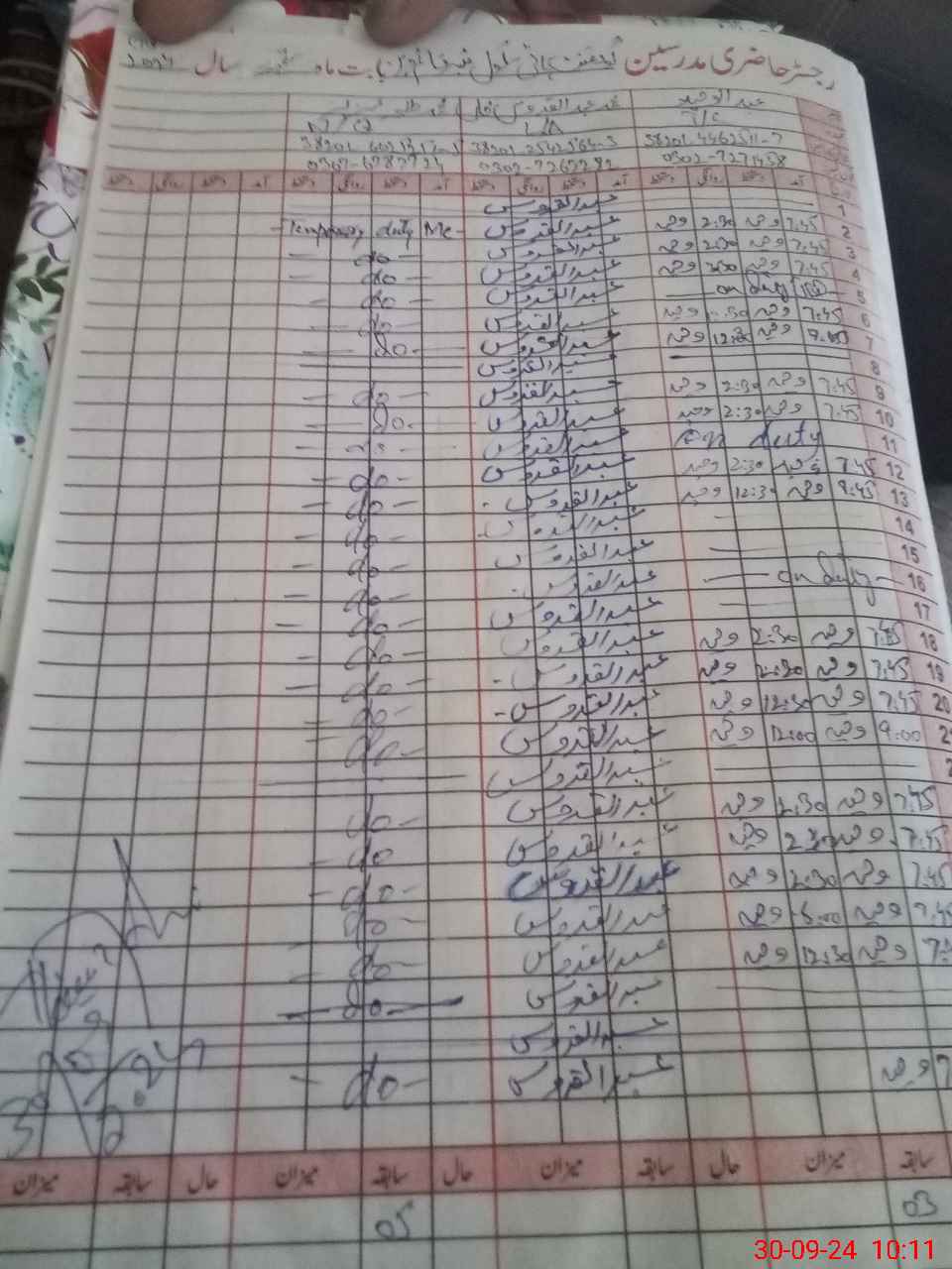 | CNIC | Full Name | Designation | R/C | Absence During Last Calender Month |