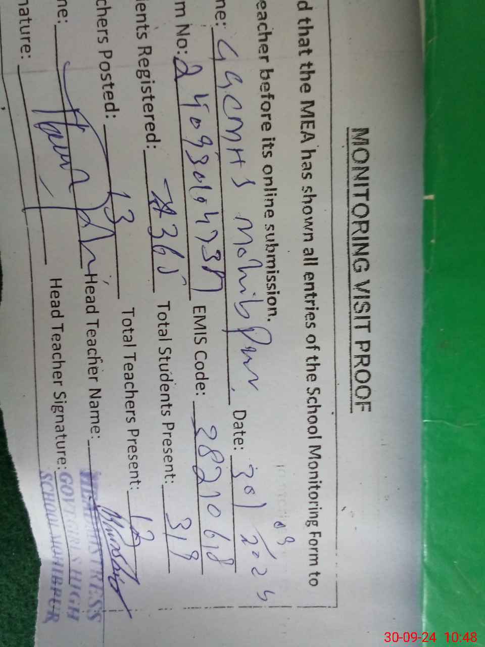 | EMIS Code: 38210618 | Name of School: GGCMHS MOHIB PUR BALA | |||