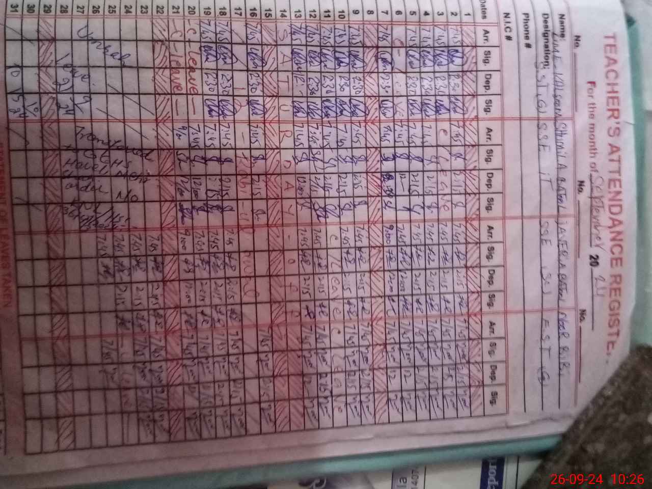 | 36**** | Um**** Ka**** | 5 | 1 | 0 | 0 | 0 | 0 | 0 | 0 | 0 | 0 | 0 | Absent (Un-Authorized) |