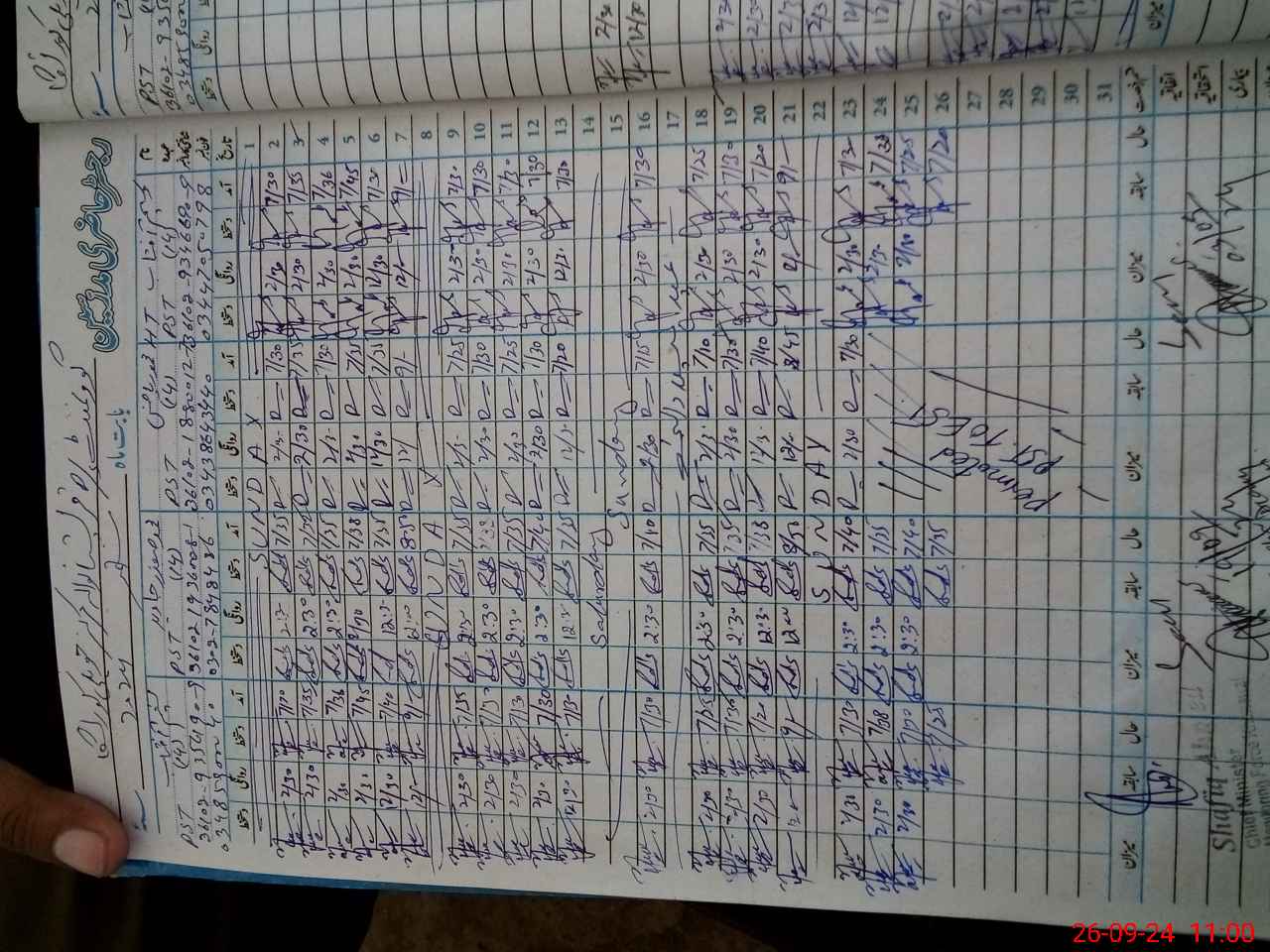 | CNIC | Full Name | Designation | R/C | Absence During Last Calender Month |
