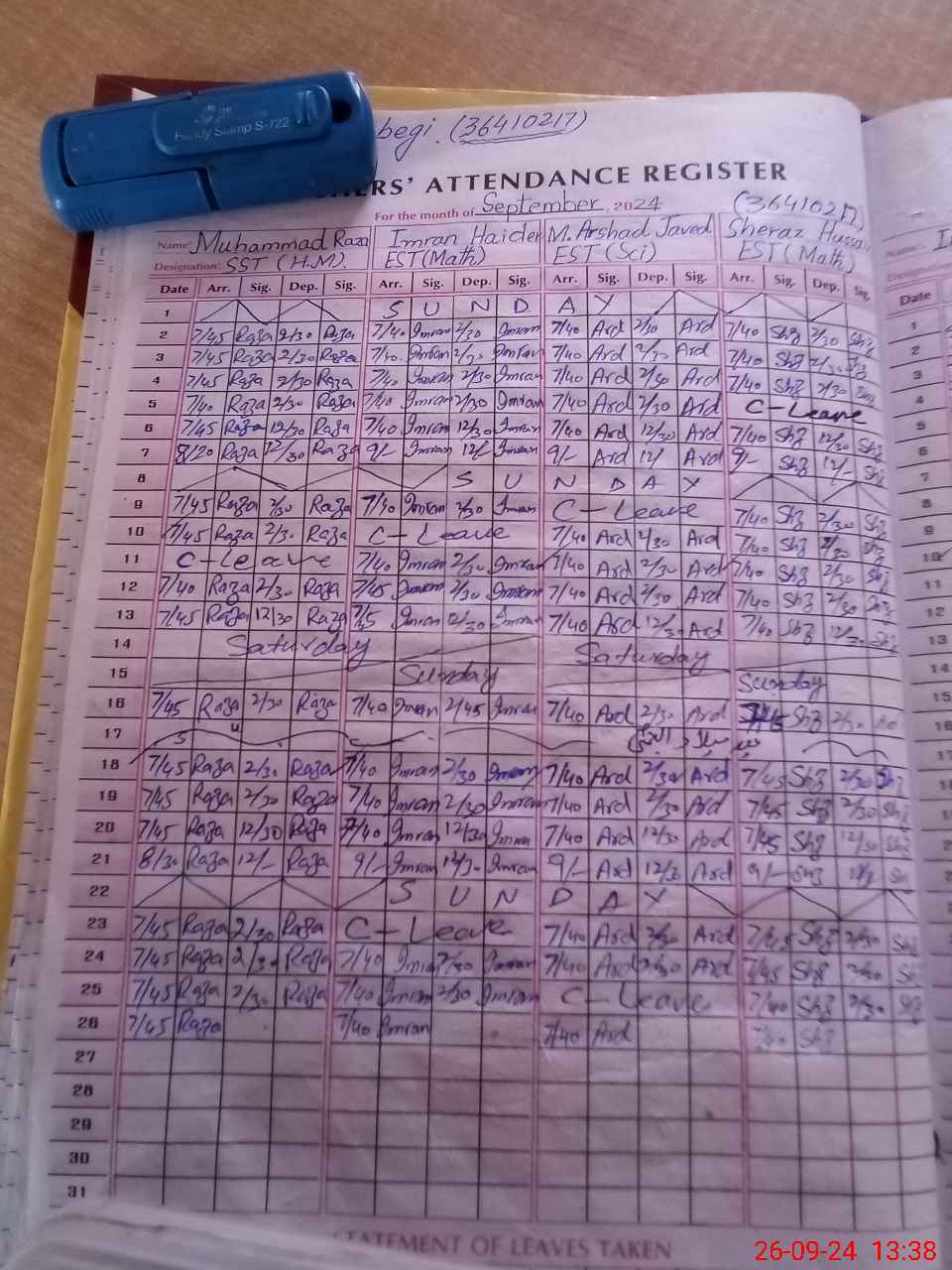 | Leave | Duty | Absent | Maternity | Medical | Ex- Pak |