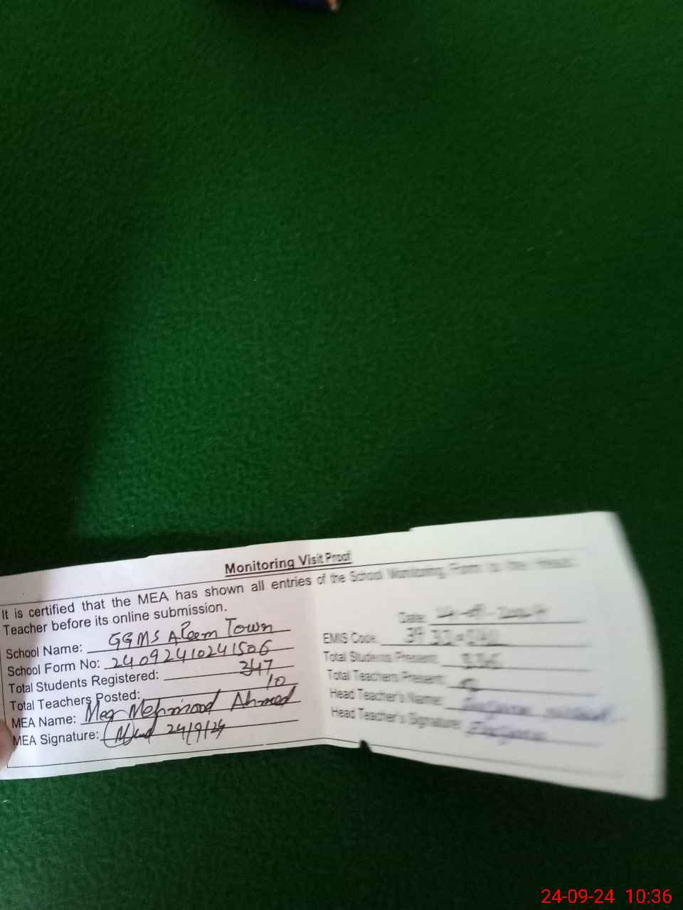 | EMIS Code: 39330548 | Name of School: GMPS 20 A-2L (ALEEM TOWN) | |||