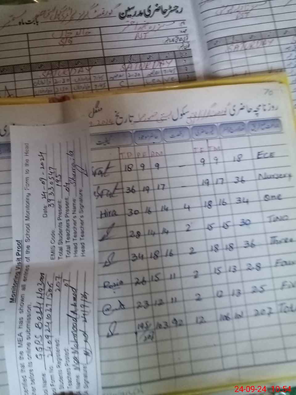 | Attendance Register | Head Teacher | MEA with School | Visit Proof |