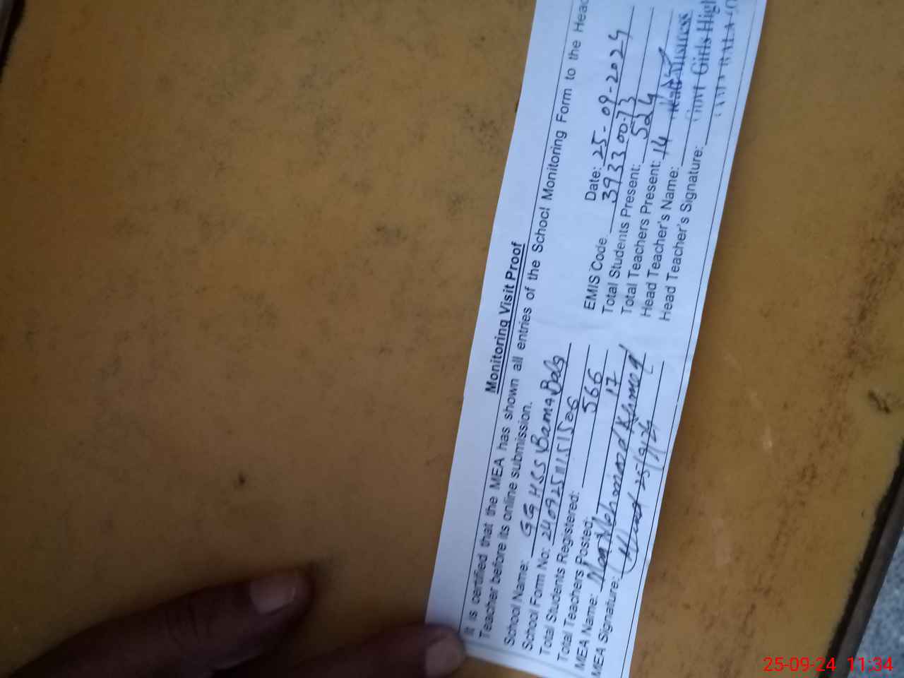 | Attendance Register | Head Teacher | MEA with School | Visit Proof |