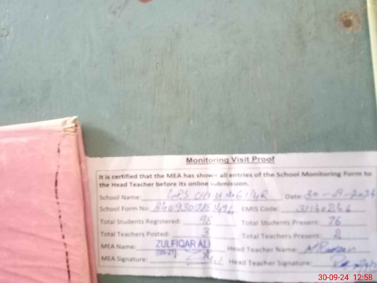 | EMIS Code: 31140246 | Name of School: GPS CHAK NO.61/4-R | |||
