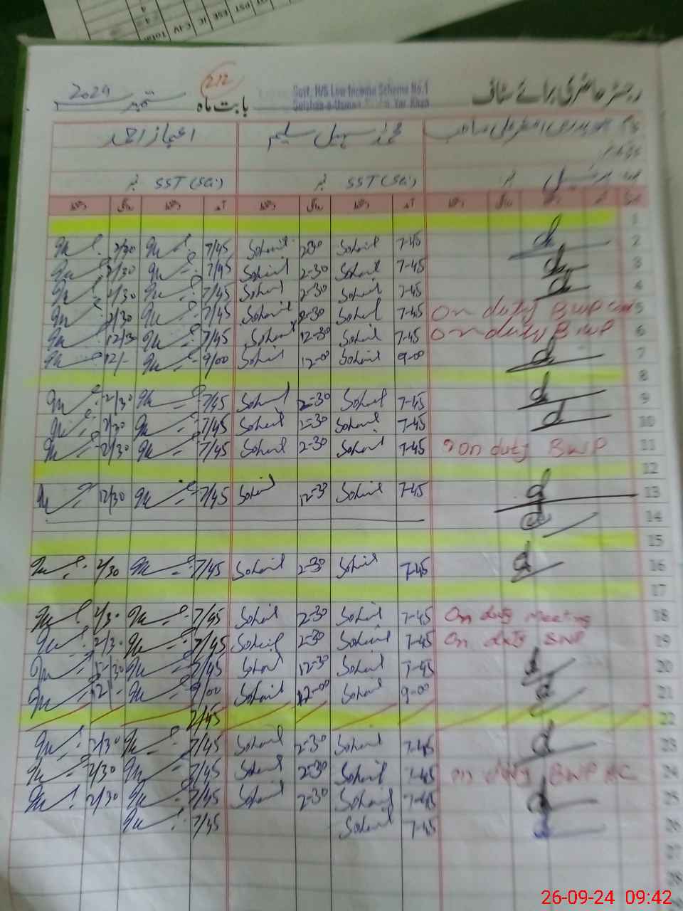 | CNIC | Full Name | Designation | R/C | Absence during last cal. month |
