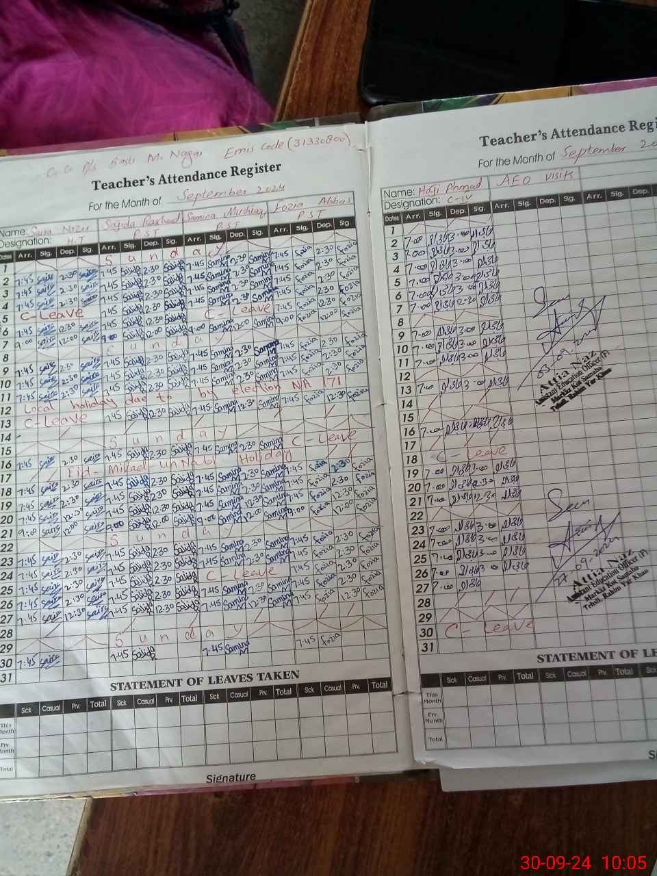| Monitoring Date: 30-09-2024 | Start Time: 30-09-2024 09:38 AM | End Time: 30-09-2024 10:08 AM | Name of MEA: Ma**** UlHa**** | |
