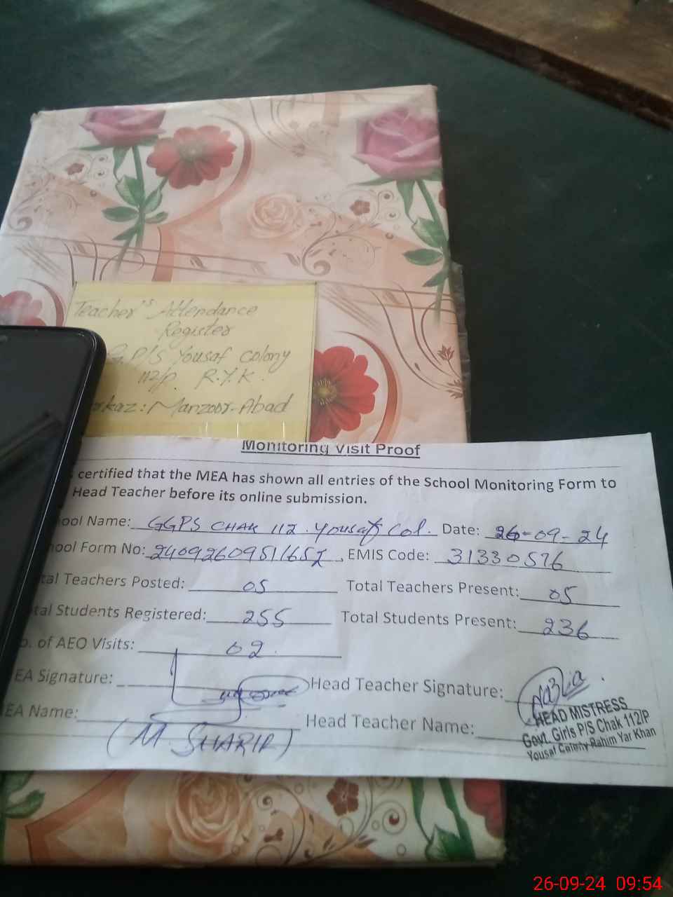 | EMIS Code: 31330576 | Name of School: GGPS CHAK 112/P YOUSAF COLONY | |||