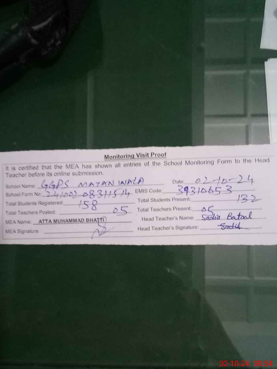 | EMIS Code: 39310653 | Name of School: GGPS MATAN WALA | |||