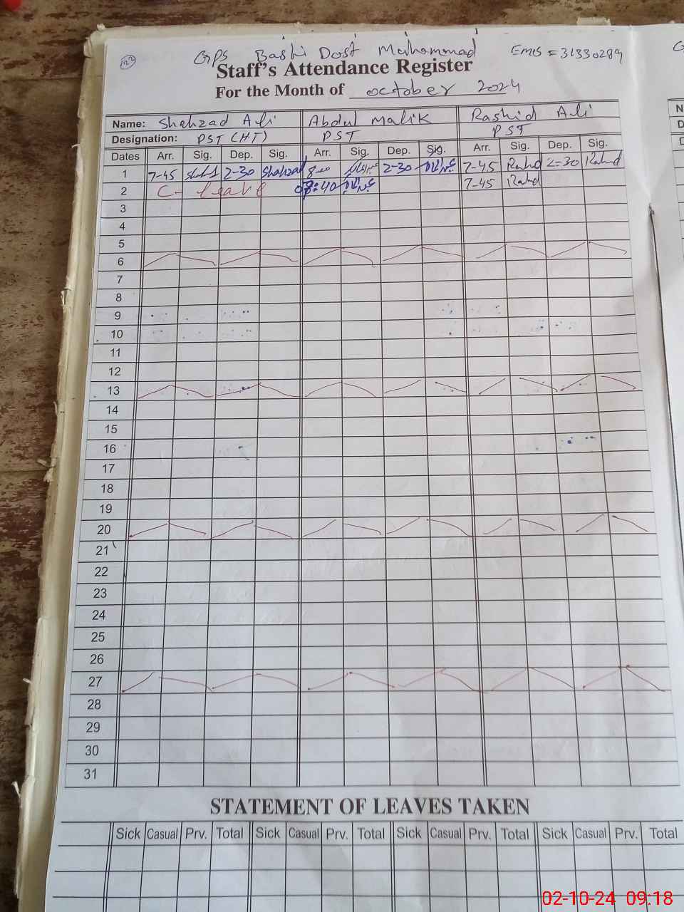 | 31**** | Sh**** Al**** | PST | Regular | 0 | 0 | 0 | 0 | 0 | 0 | 0 | 0 | 0 | Casual |