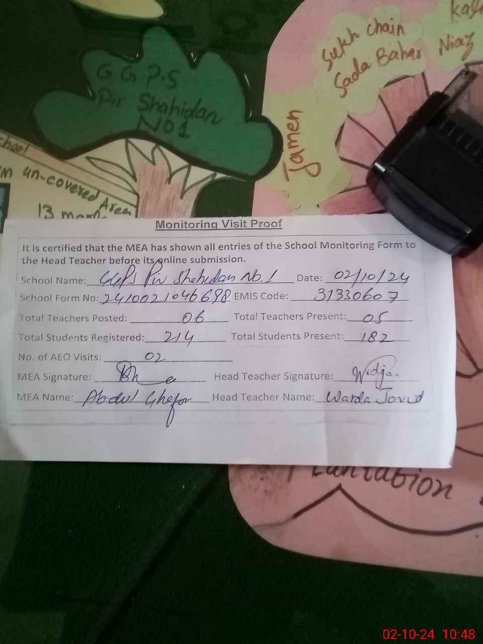 | EMIS Code: 31330607 | Name of School: GGPS PIR SHAHIDAN NO.1 | |||
