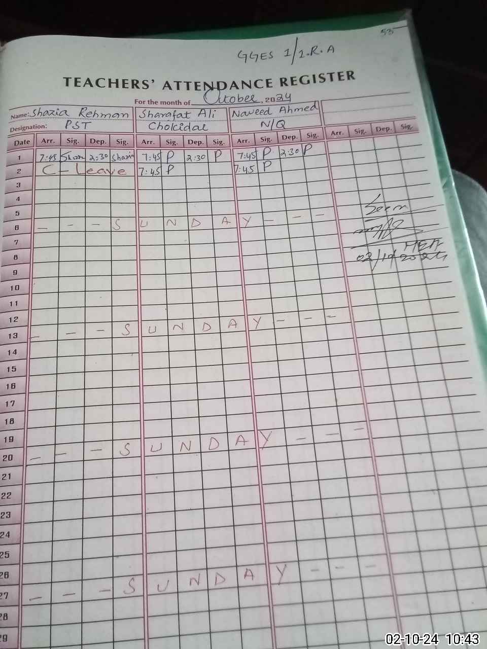 | CNIC | Full Name | Designation | R/C | Absence During Last Calender Month |
