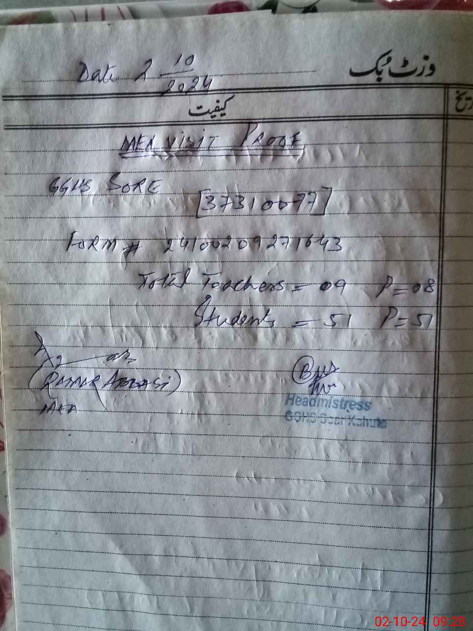 | Certified that this School was Inspected by the Undersigned MEA/DMO Today and the Information Stated Above is as Per Record. | |||||