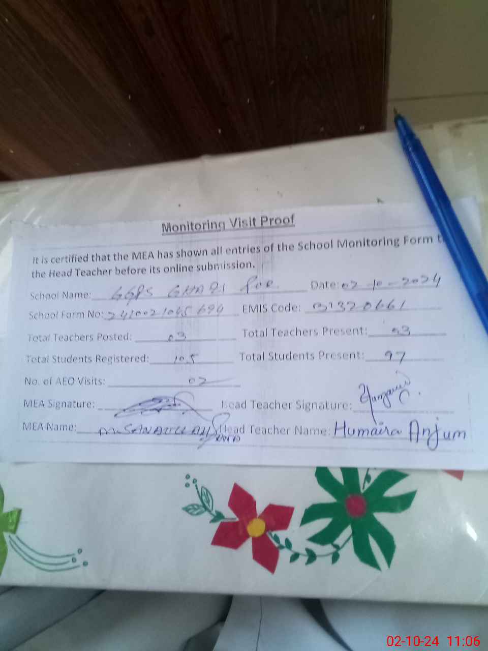 | EMIS Code: 31320661 | Name of School: GGPS GHAZI PUR | |||
