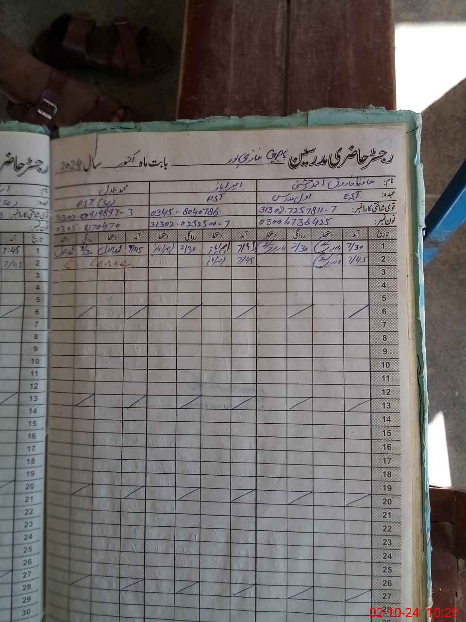 | CNIC | Full Name | Designation | R/C | Absence During Last Calender Month |
