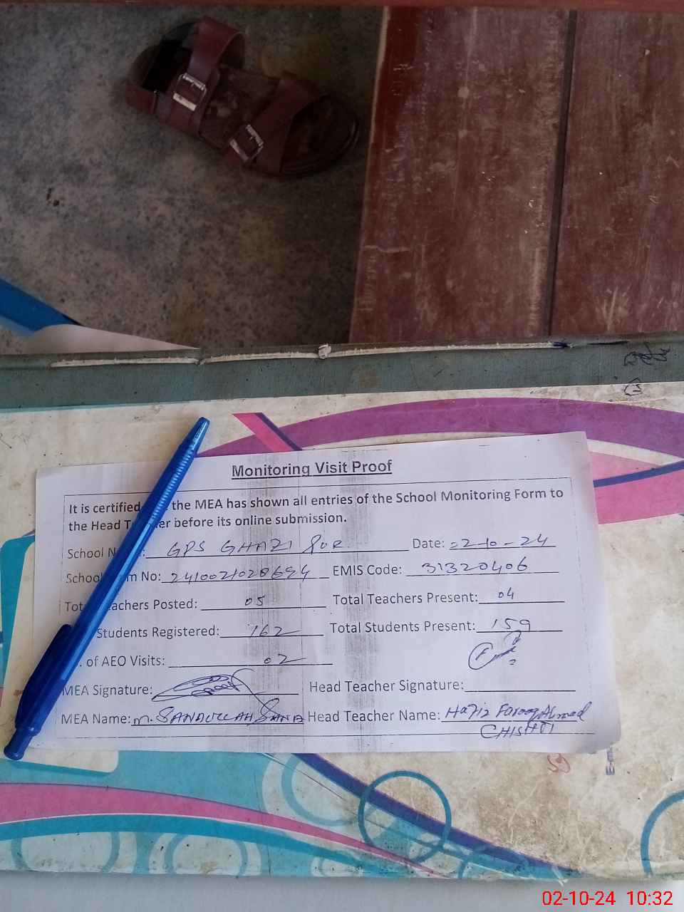 | EMIS Code: 31320406 | Name of School: GPS GHAZI PUR | |||