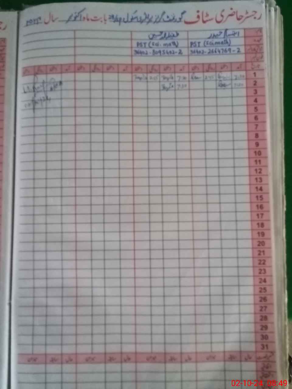 | Name: Ib**** Ha**** Designation: (School Headmaster's/Headmistress's) PST Phone/Cell Number: 03**** |