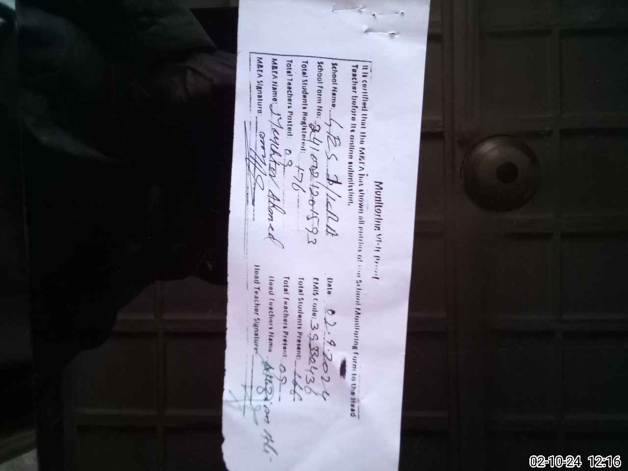 | Certified that this School was Inspected by the Undersigned MEA/DMO Today and the Information Stated Above is as Per Record. | |||||