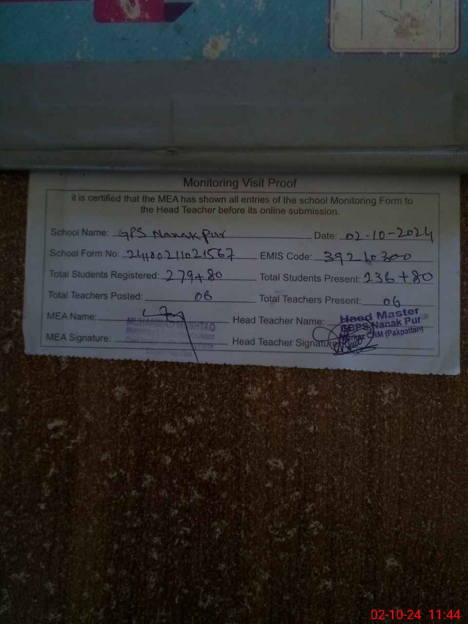 | EMIS Code: 39210300 | Name of School: GES NANAK PUR | |||