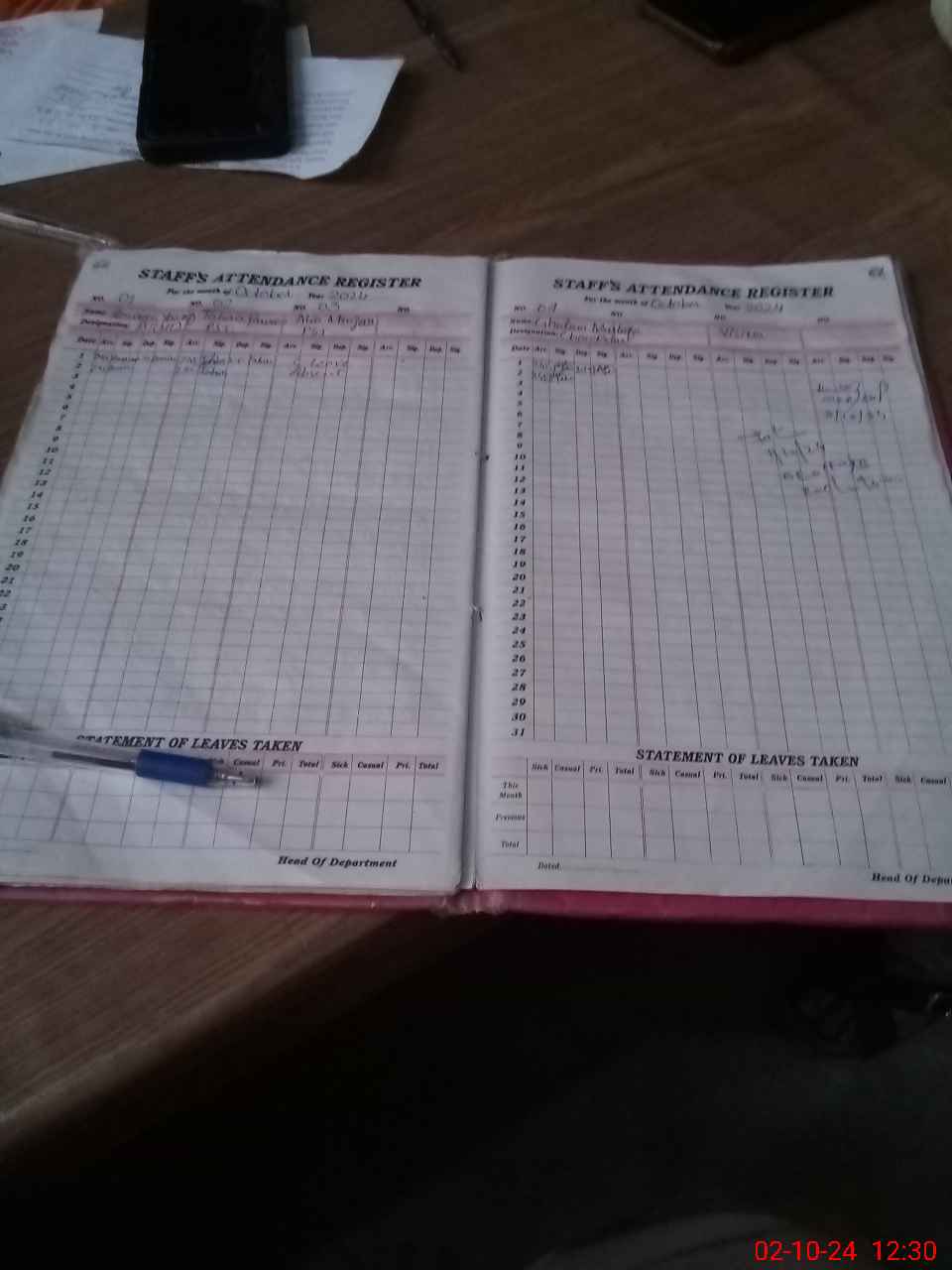 | Leave | Duty | Absent | Maternity | Medical | Ex- Pak |