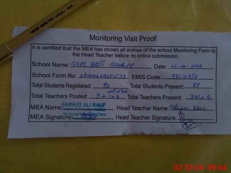 | EMIS Code: 39210350 | Name of School: GGPS BASTI GHUREE | |||