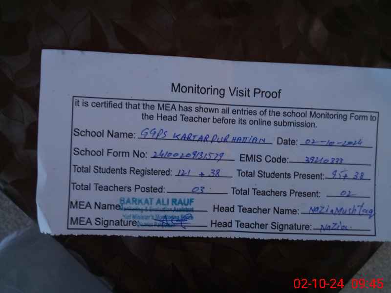 | EMIS Code: 39210333 | Name of School: GGPS KARTAR PUR HATTIAN | |||